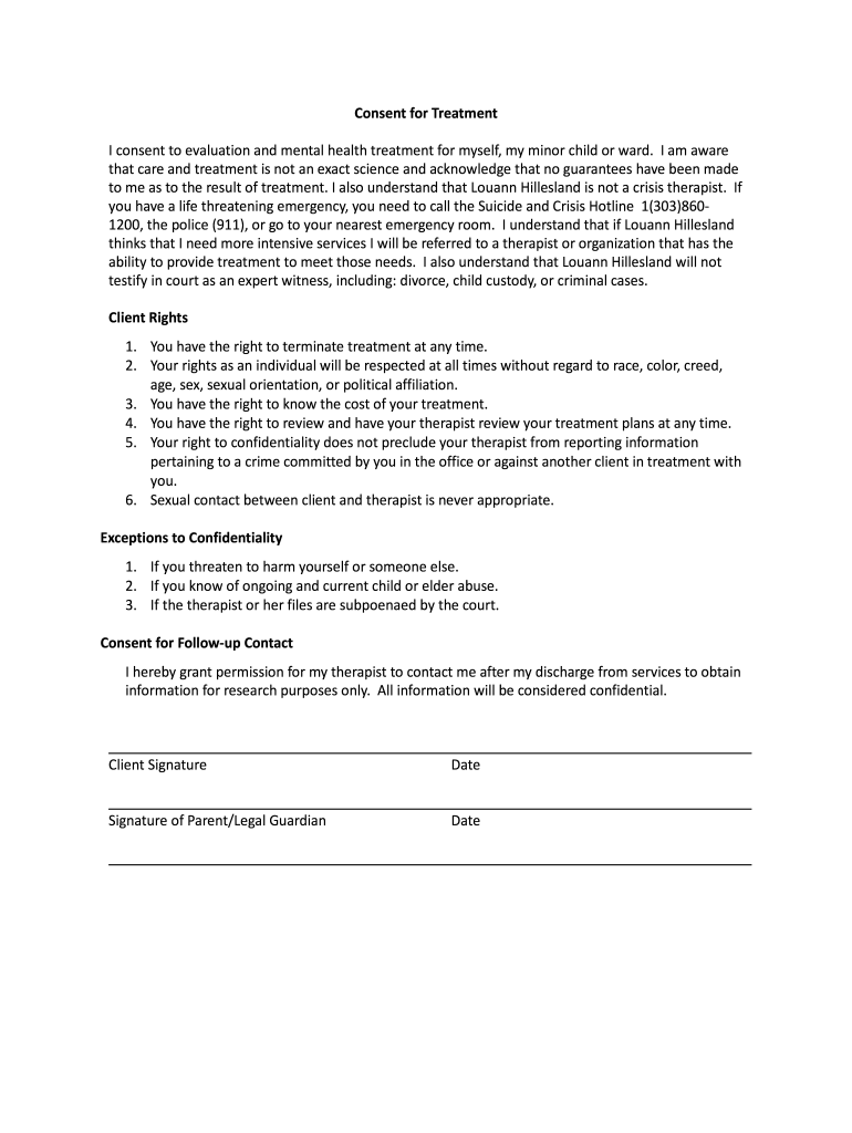 Get the free I consent to evaluation and mental health treatment for myself, my minor child or ward