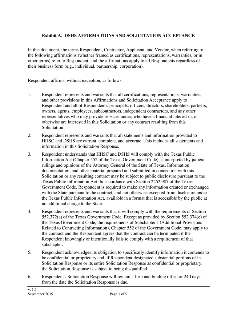 Exhibit A. DSS AFFIRMATIONS AND SOLICITATION ACCEPTANCE