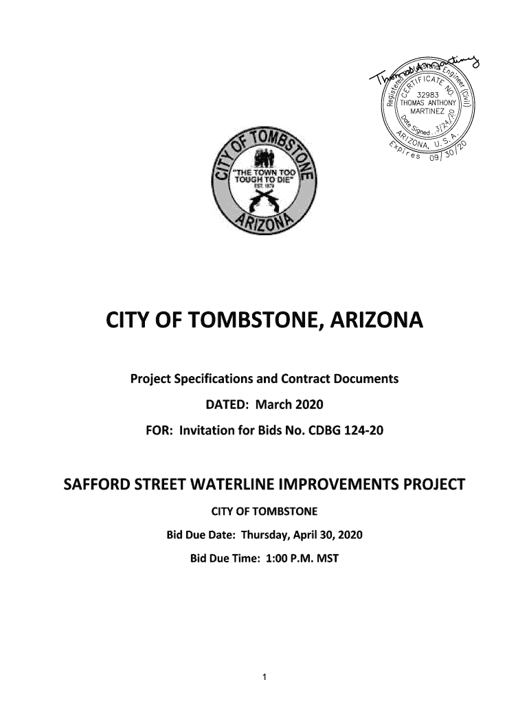 CITY OF TOMBSTONES AFFORD STREET WATERLINE IMPROVEMENTS
