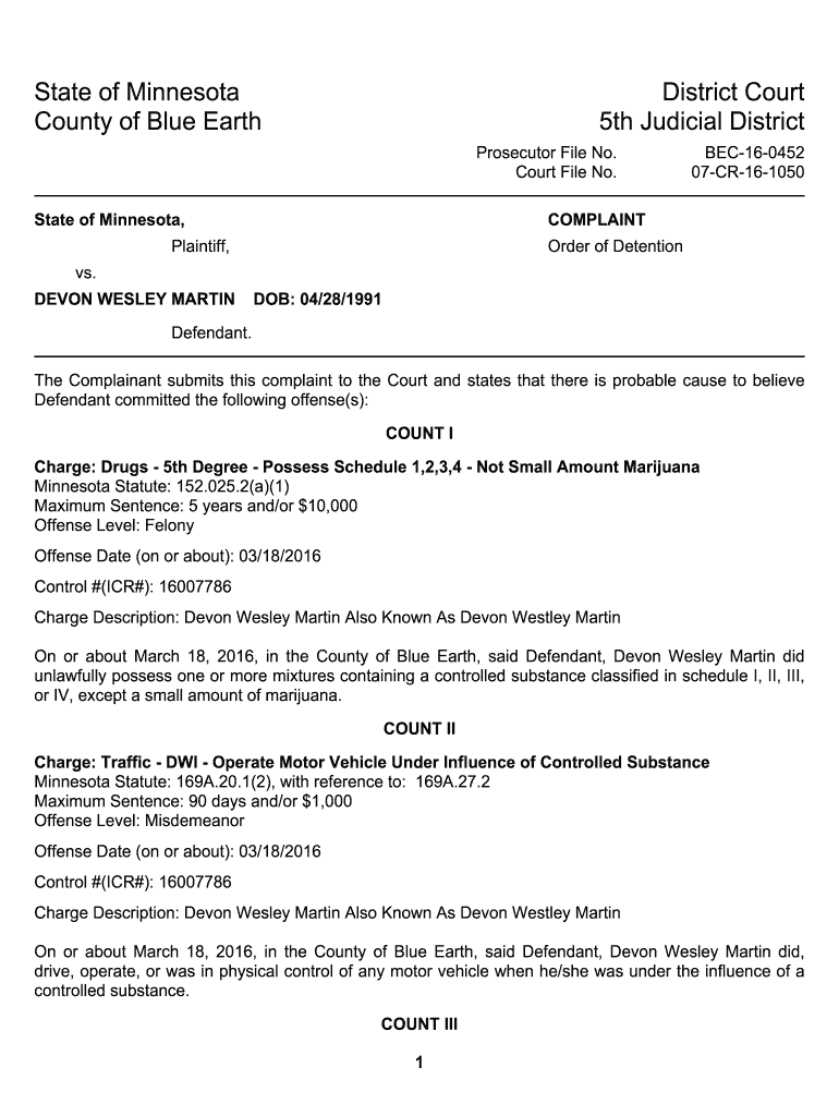CourtFileNo. StateofMinnesota,BEC160452