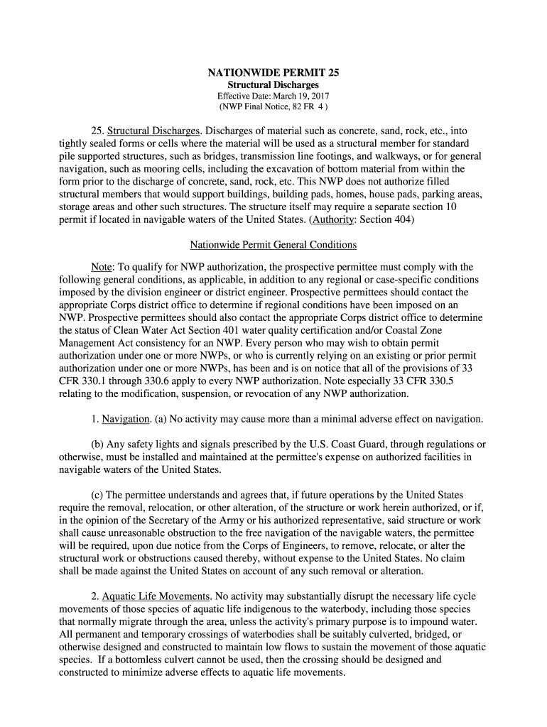Get the free NATIONWIDE PERMIT 25 25. Structural Discharges. Discharges of ...