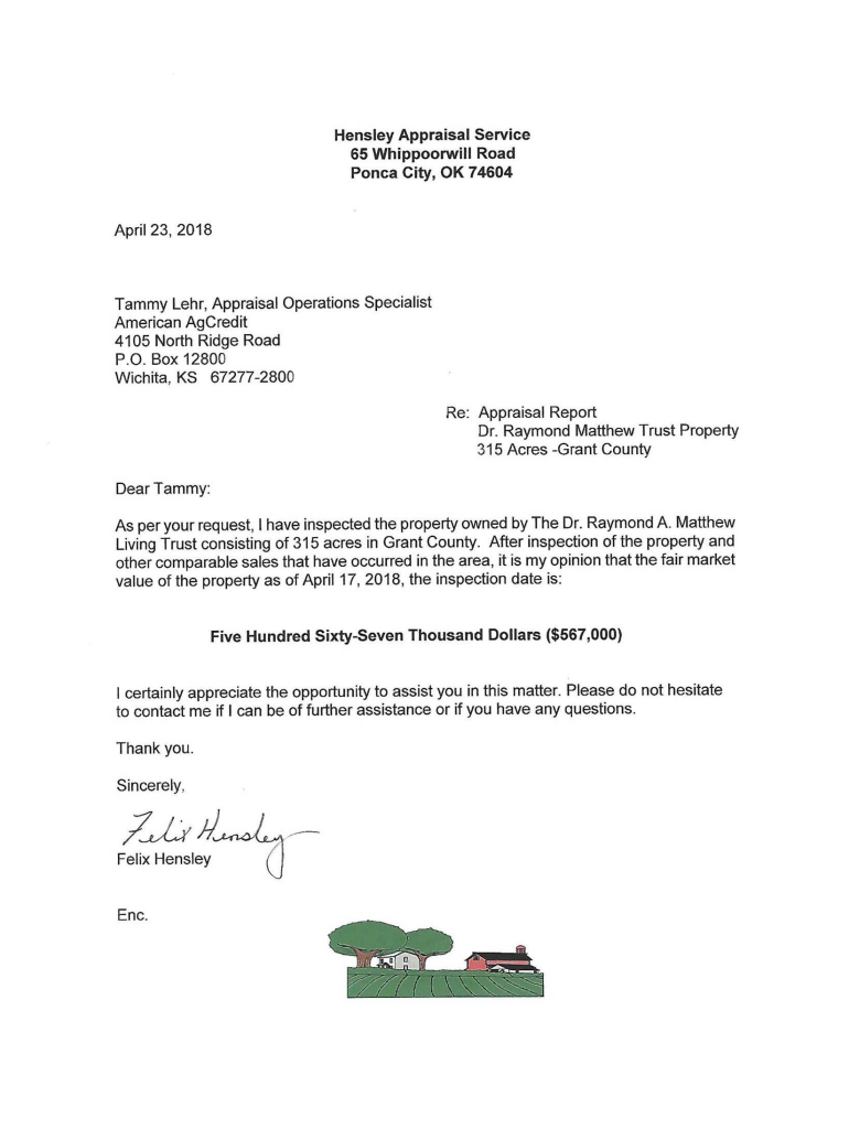 File #009000055348Uniform Agricultural Appraisal Report Restricted Appraisal Reportage Dr. Raymond A. Matthew Living Trust 315 Acres Grant County, Oklahoma The North Half, Less Hwy. And RR, of Sec.