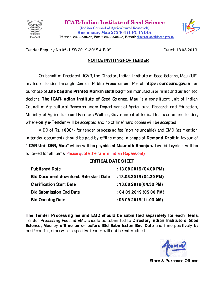 Amerindian Institute of Seed Science (Indian Council of Agricultural Research)Kashmir, MAU 275 103 (UP), INDIA Phone : 05472530386, Fax : 05472530325, Email: director. Seed car.gov.intended Inquiry