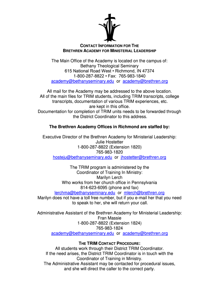 Get the free BRETHREN ACADEMY FOR MINISTERIAL LEADERSHIP