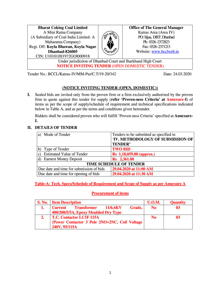 Get the free Bharat Coking Coal Limited Tender - bidassist.com