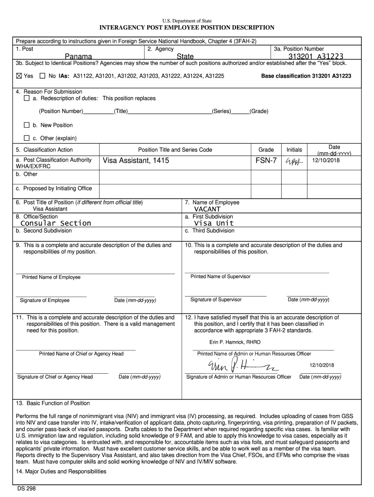 Get the free Panama State 313201 A31223 Visa Assistant, 1415 FSN-7 VACANT ...