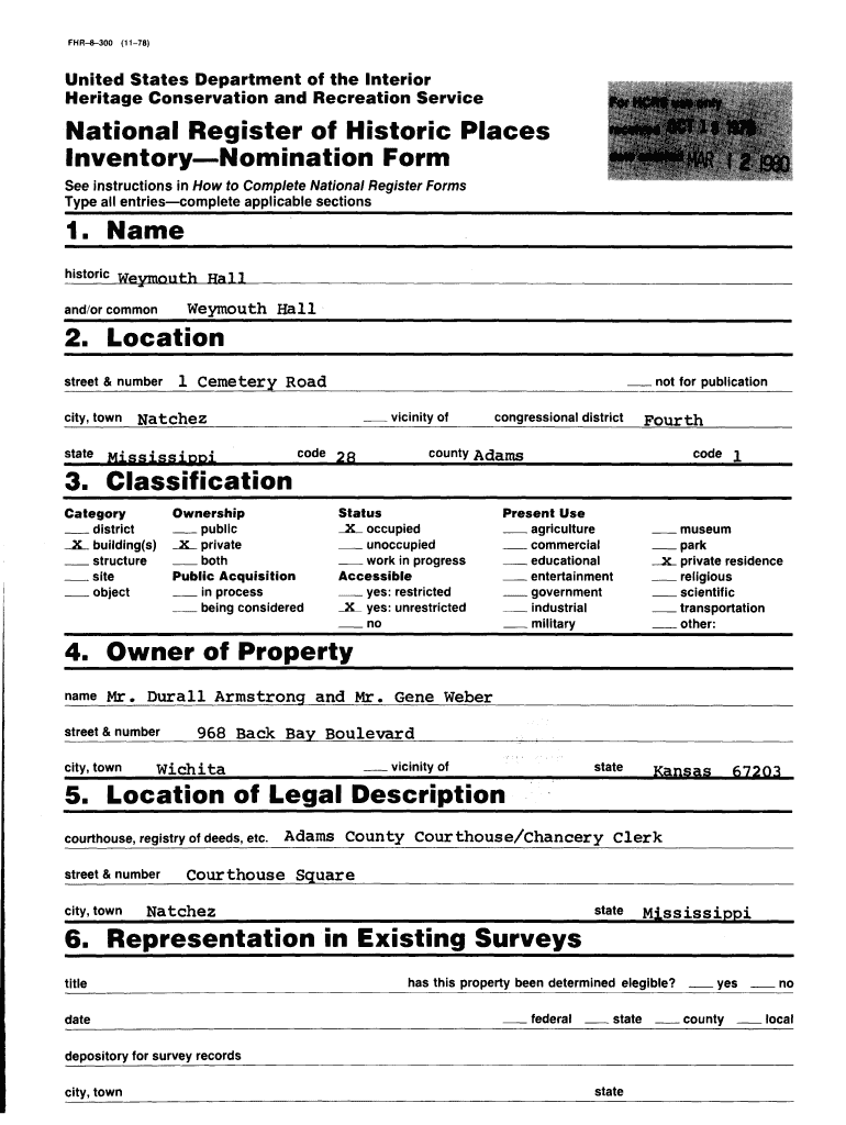 FHR8300(1178)United States Department of the Interior Heritage Conservation and Recreation ServiceNational Register of Historic Places Inventory Nomination Form See instructions in How to Complete