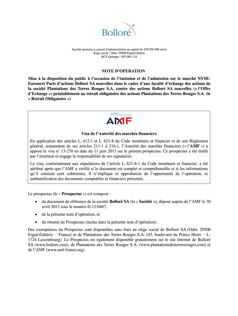Obtenir le gratuit NOTE D 'OPERATION Mise la disposition du public ... - Bollor