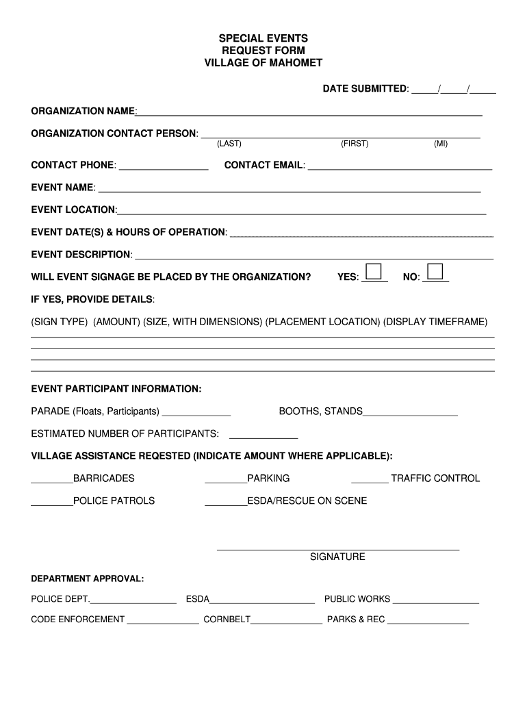 Village of Mahomes 503 E. Main Street P.O. Box 259 Mahomes, IL 618530259 Phone (217) 5864456 fax (217) 5865696Event Coordinator, Thank you for notification of your special event. If you intend to