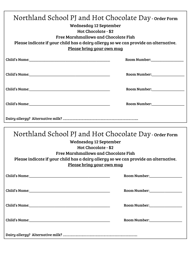 Get the free Northland School PJ and Hot Chocolate Day - Order Form ...