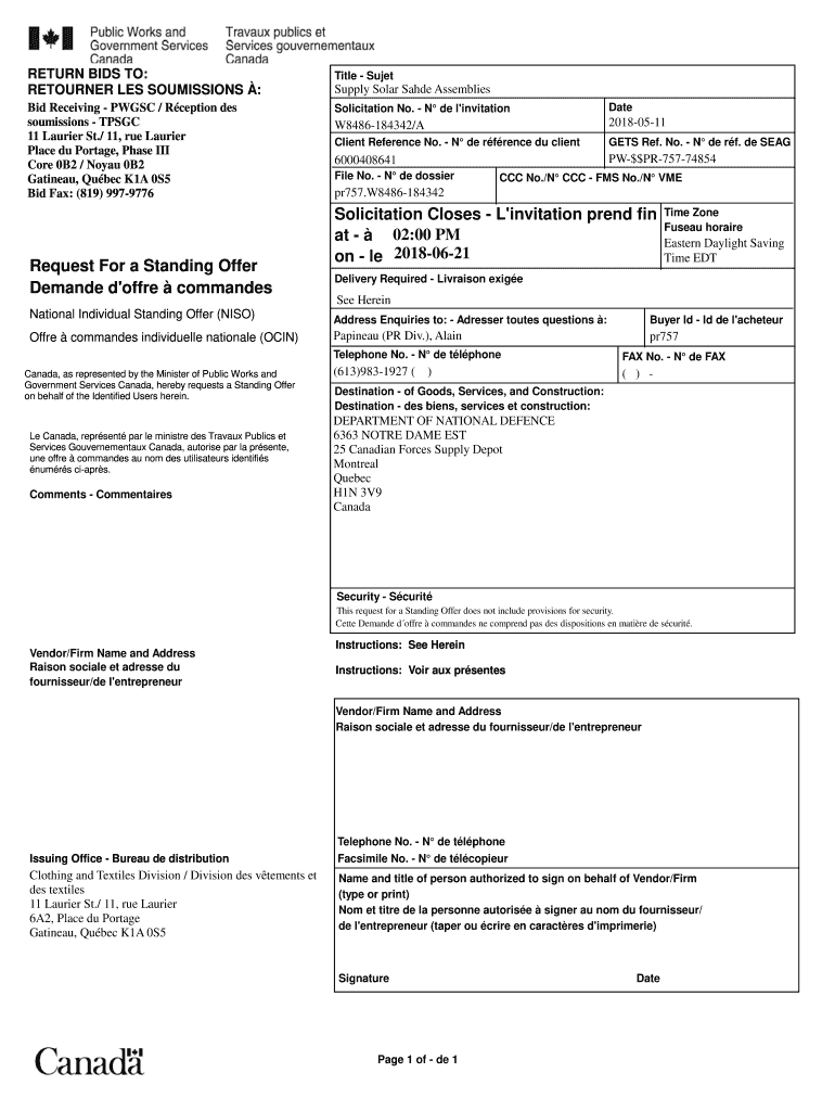 Get the free Online Bid Receiving - PWGSC/Rception des Fax Email ...