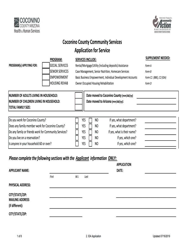Individuals and families who meet the eligibility criteria for the programs and services offered by Coconino County Community Services are required to file for assistance.