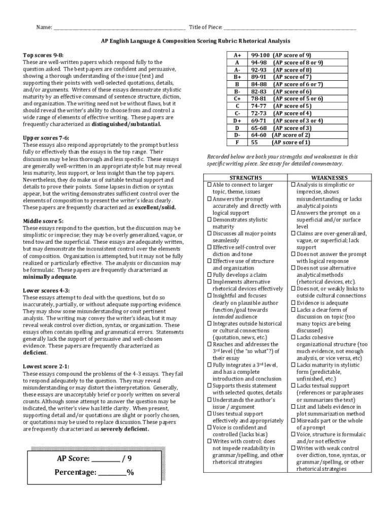 Get the free AP English Language & Composition Scoring Rubric