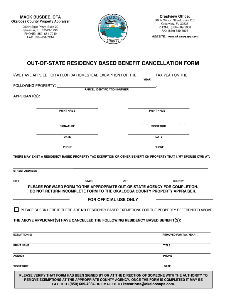 Get the free out-of-state residency based benefit cancellation form