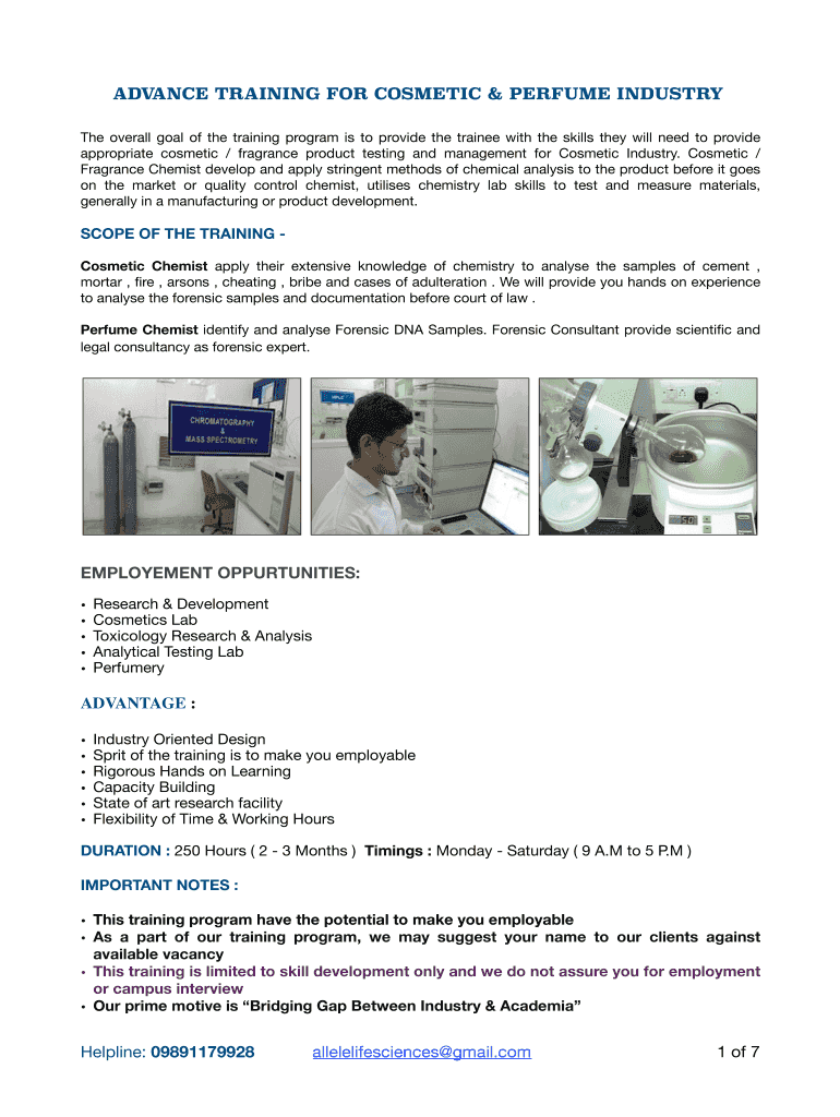 ADVANCE TRAINING FOR COSMETIC & PERFUME INDUSTRY The overall goal of the training program is to provide the trainee with the skills they will need to provide appropriate cosmetic / fragrance product