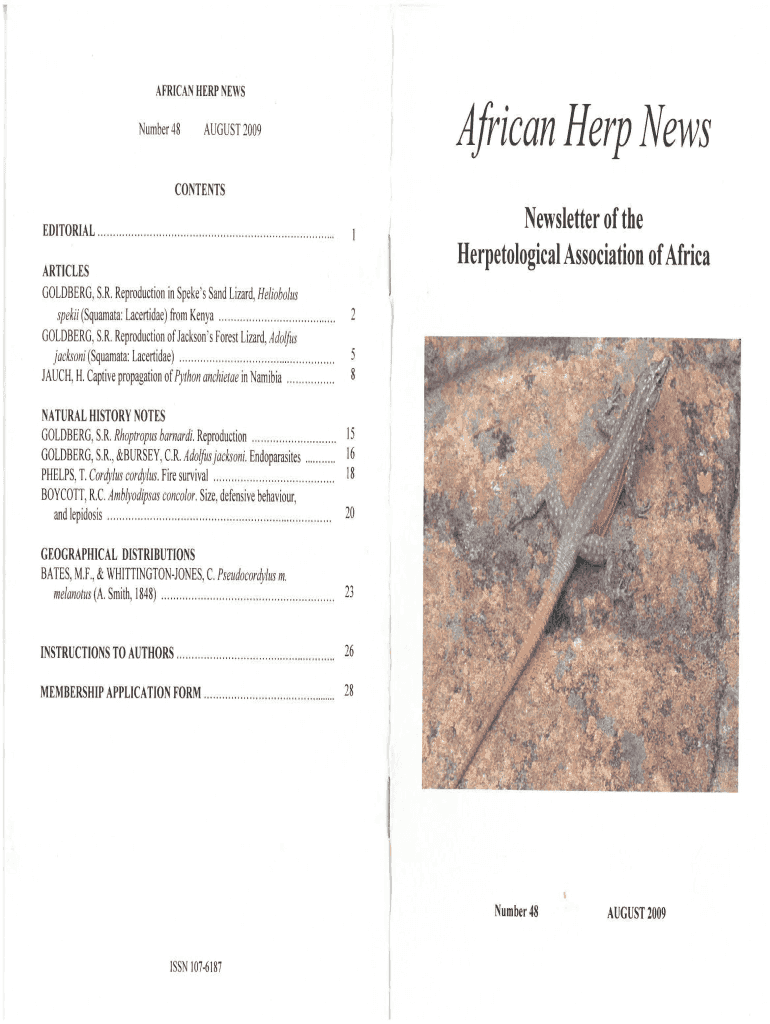 AFRICAN HER Renumber 48African Her Newsagent 2009CONTENTSNewsletter of the Dermatological Association of AfricaEDITORIAL .............. ................ ........................... .....................