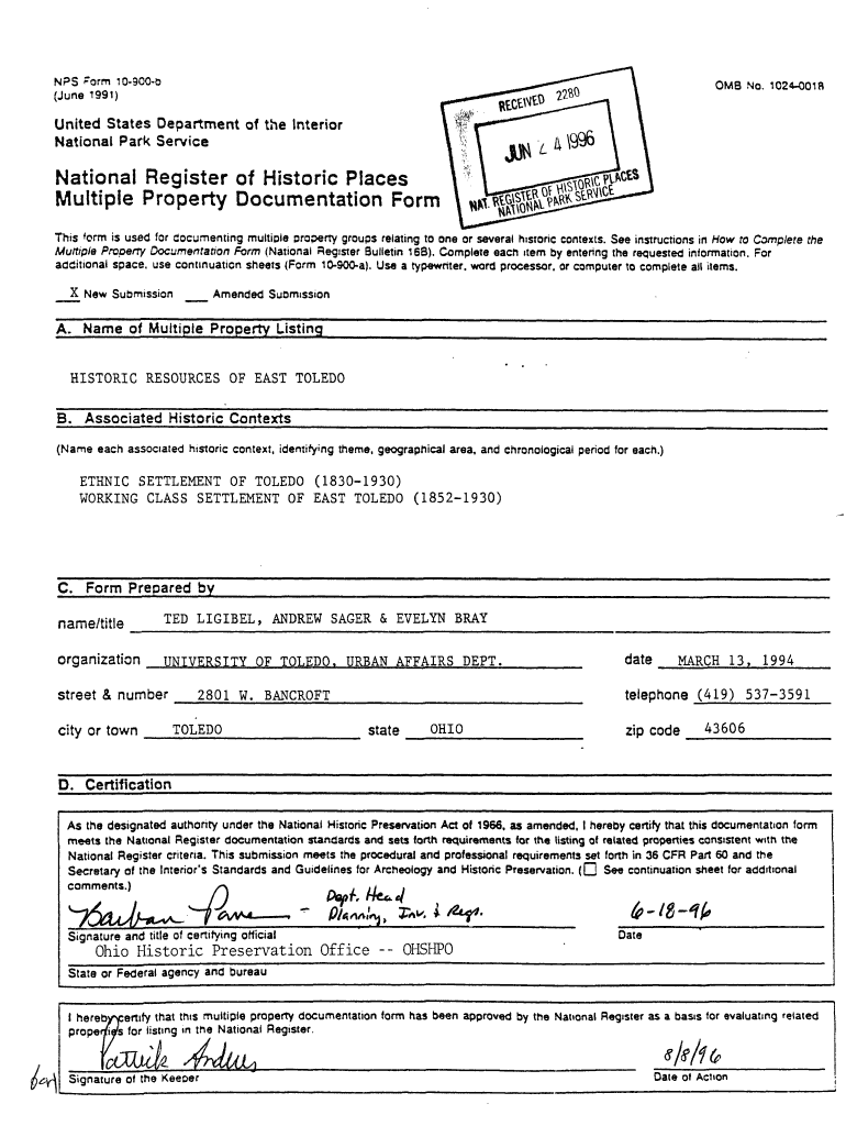NPS ORM 10900b 0 MB No. 10240018United States Department of the Interior National Park ServiceNational Register of Historic Places Multiple Property Documentation Form This ORM is used for documenting