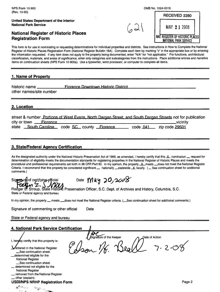 Get the free National Register of Historic Places Registration Form MAY 2 1 2008