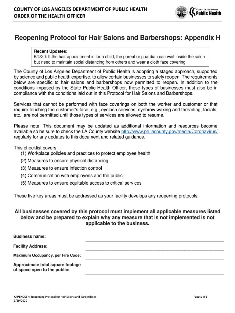 Get the free Reopening Protocol for Hair Salons and Barbershops: Appendix H