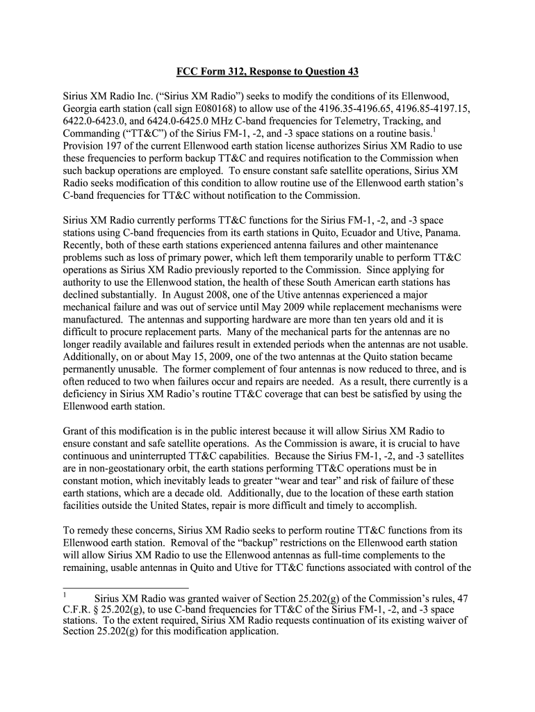 Get the free FCC Form 312, Response to Question 43 Sirius XM Radio Inc ...