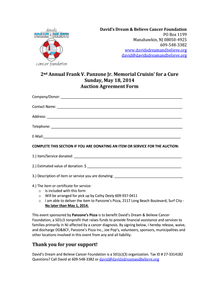 Davids Dream & Believe Cancer Foundation PO Box 1199 Manahawkin, NJ 080504925 6095483382 www.davidsdreamandbelieve.org David davidsdreamandbelieve.org2nd Annual Frank V. Pan zone Jr. Memorial Cruising
