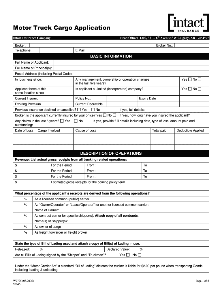 The Motor Truck Cargo Insurance Application is a business form used by trucking companies in Alberta to apply for cargo insurance.