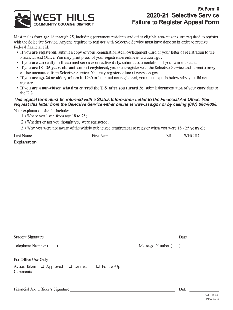 FA Form 8202021 Selective Service Failure to Register Appeal Form Most males from age 18 through 25, including permanent residents and other eligible noncitizens, are required to register with the