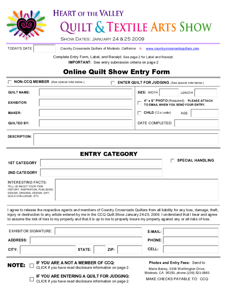 Get the free Online Quilt Show Entry Form - Country Crossroads Quilters