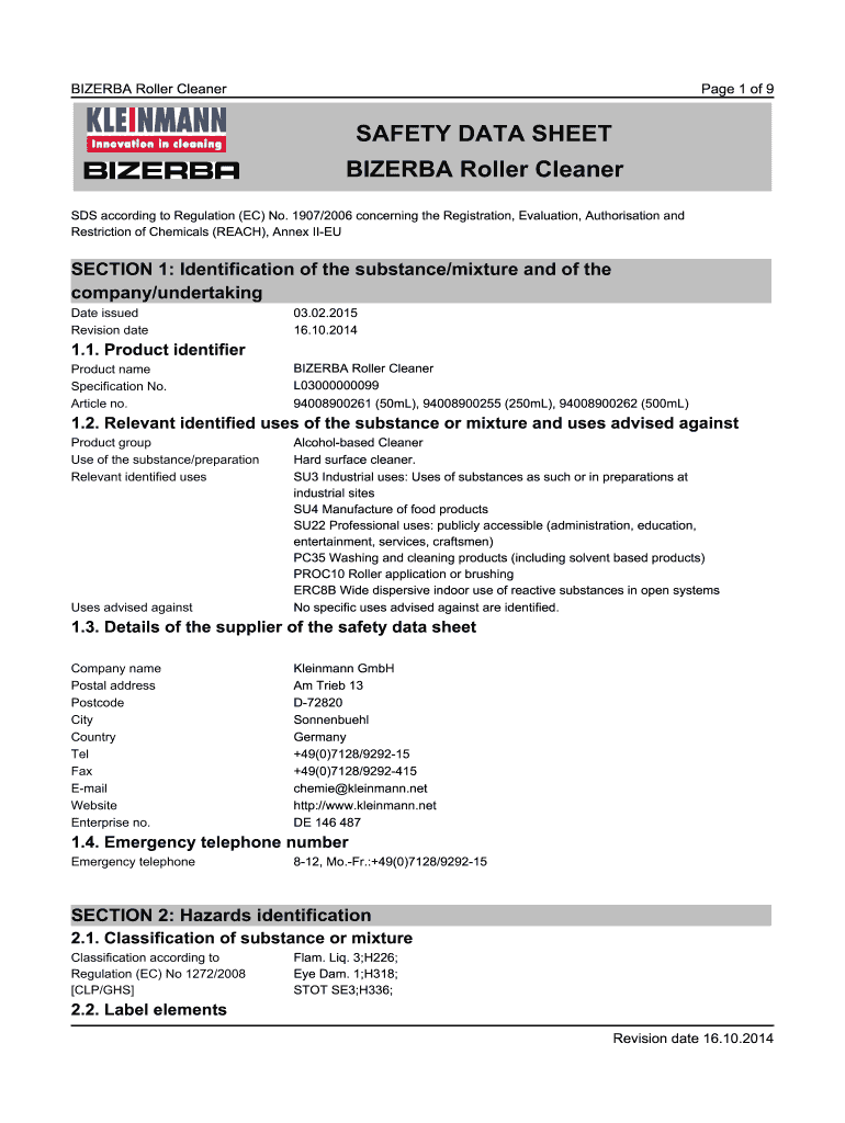 How to fill out safety data sheet bizerba
