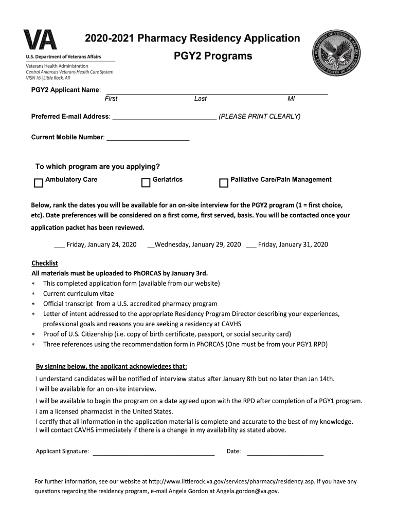 20202021 Pharmacy Residency Application PGY2 Programs PGY2 Applicant Name: FirstLastMIPreferred Email Address: (PLEASE PRINT CLEARLY) Current Mobile Number: To which program are you applying? Ambulatory