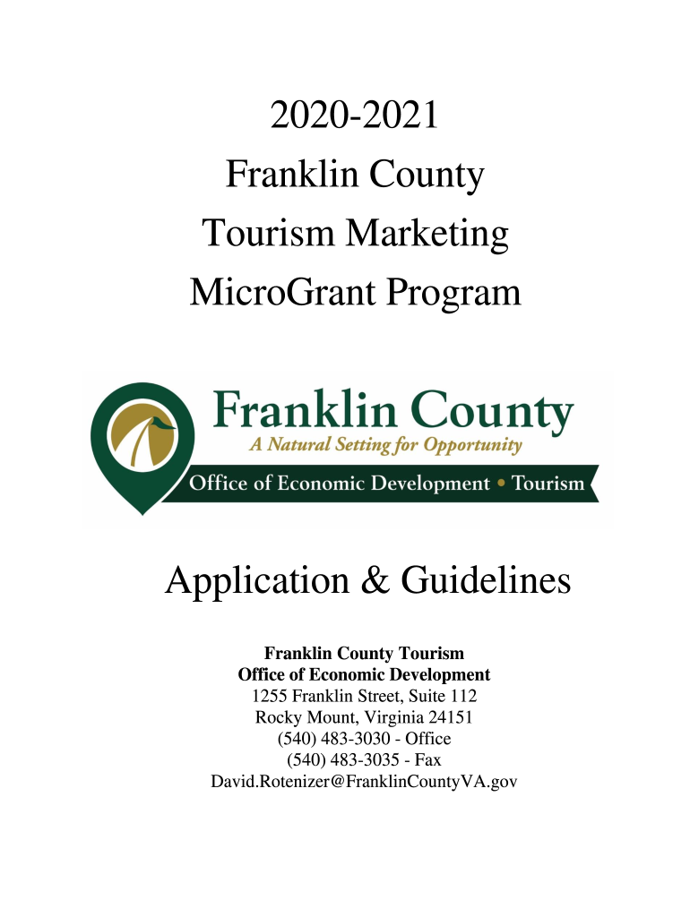 20202021 Franklin County Tourism Marketing MicroGrant ProgramApplication & Guidelines Franklin County Tourism Office of Economic Development 1255 Franklin Street, Suite 112 Rocky Mount, Virginia 24151