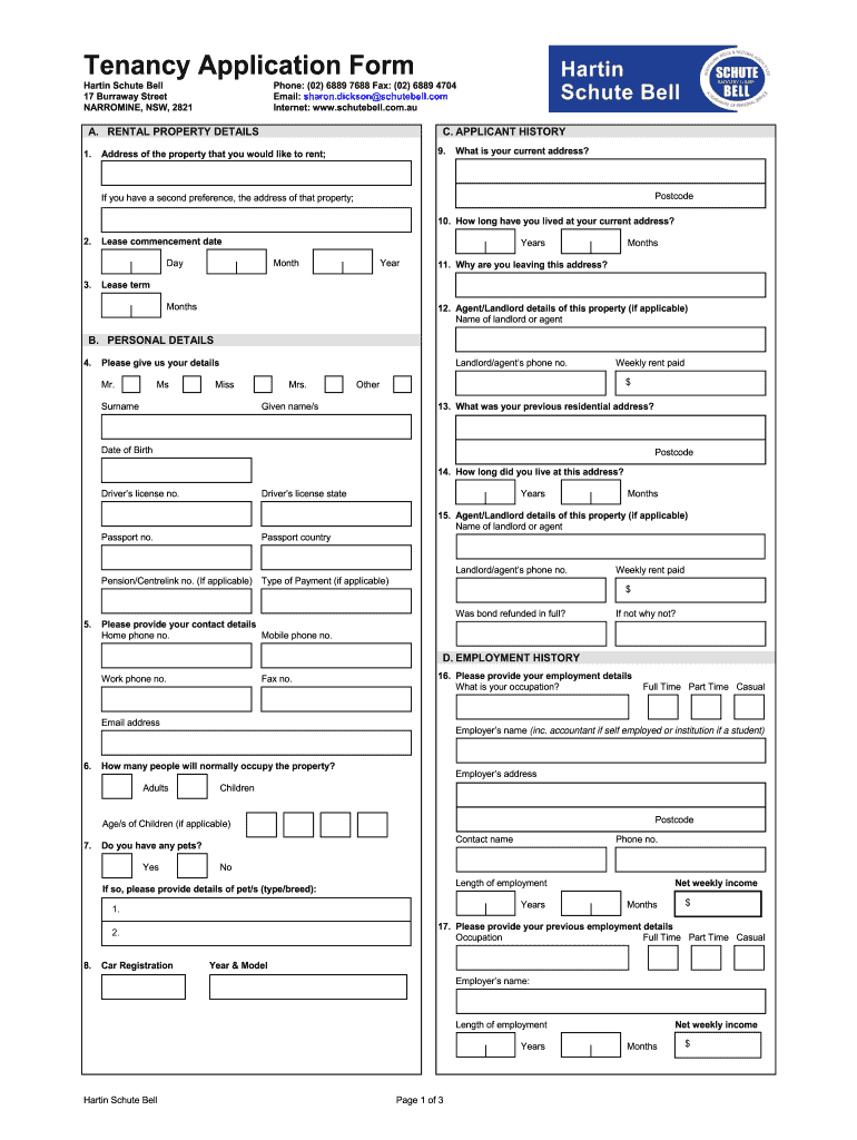 Get the free Tenancy Application Form