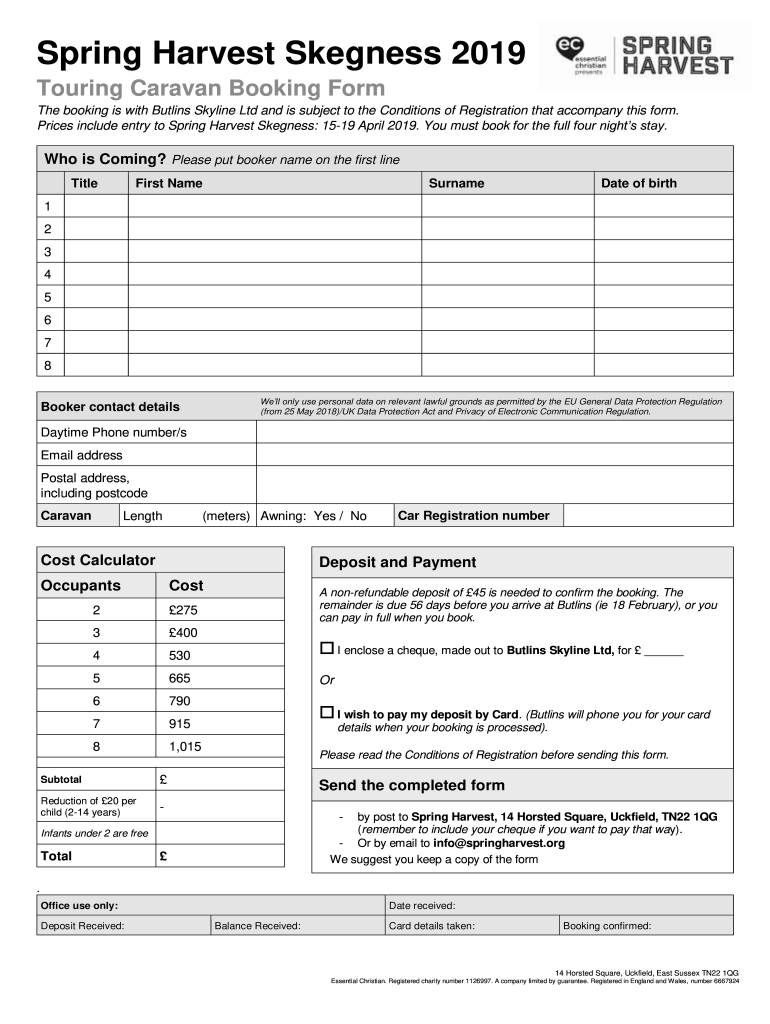 The booking is with Buttons Skyline Ltd and is subject to the Conditions of Registration that accompany this form.