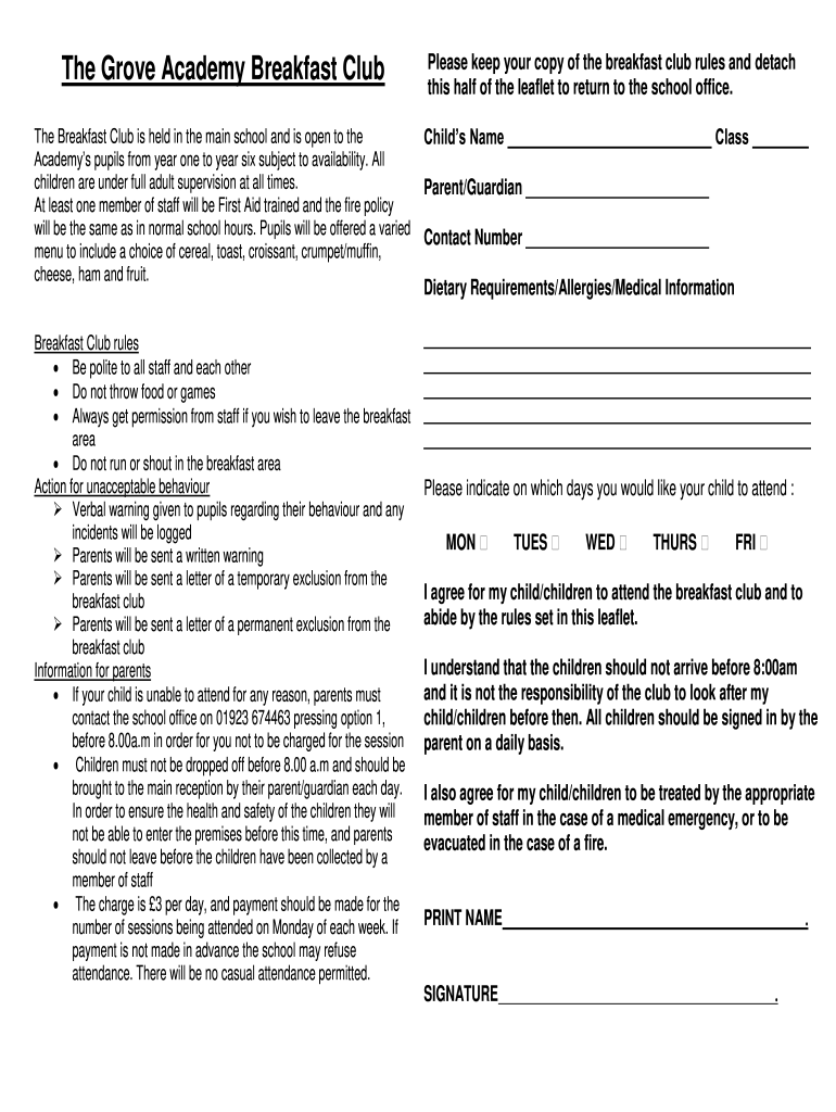 The Grove Academy Breakfast Sublease keep your copy of the breakfast club rules and detach
