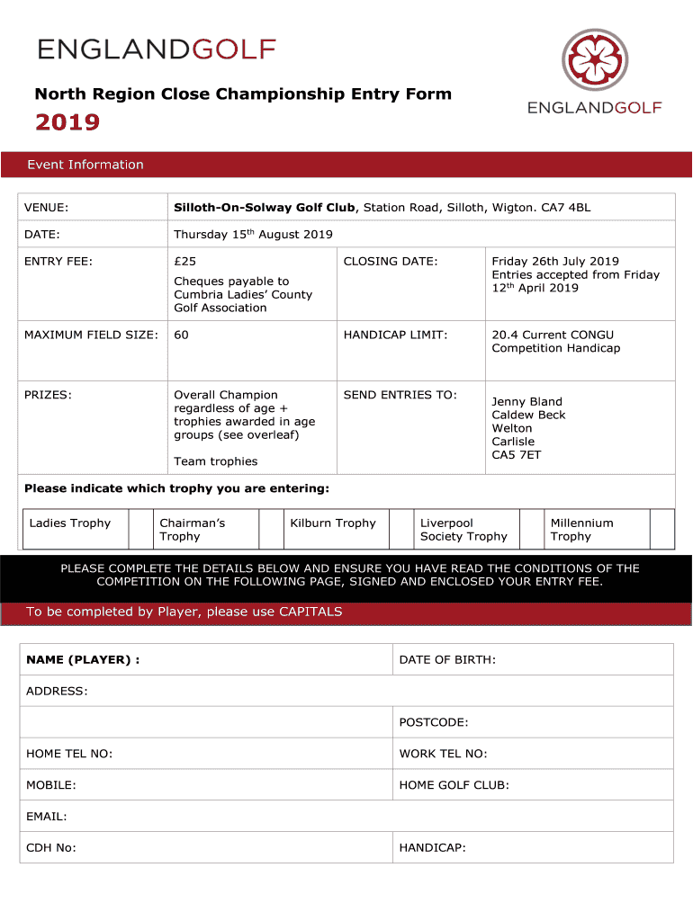 North Region Close Championship Entry Form2019