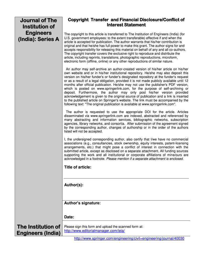 (India): Series Copyright Transfer and Financial Disclosure/Conflict of