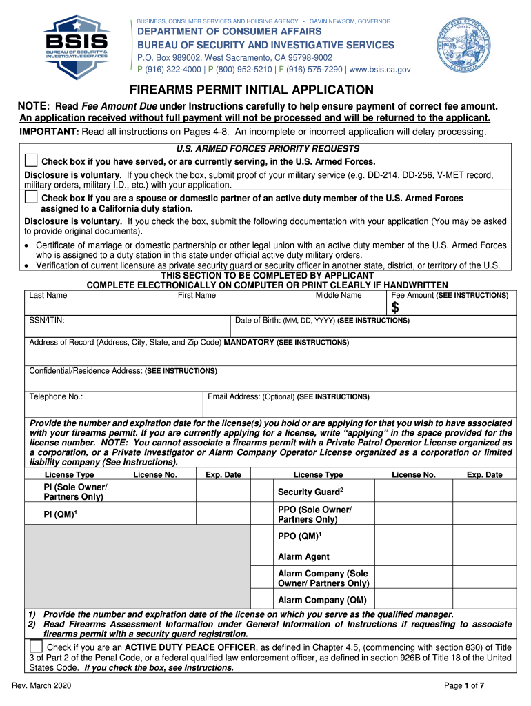 BUSINESS, CONSUMER SERVICES AND HOUSING AGENCY GAVIN NEWSOM, GOVERNORDEPARTMENT OF CONSUMER AFFAIRS BUREAU OF SECURITY AND INVESTIGATIVE SERVICES P.O. Box 989002, West Sacramento, CA 957989002 P (916)
