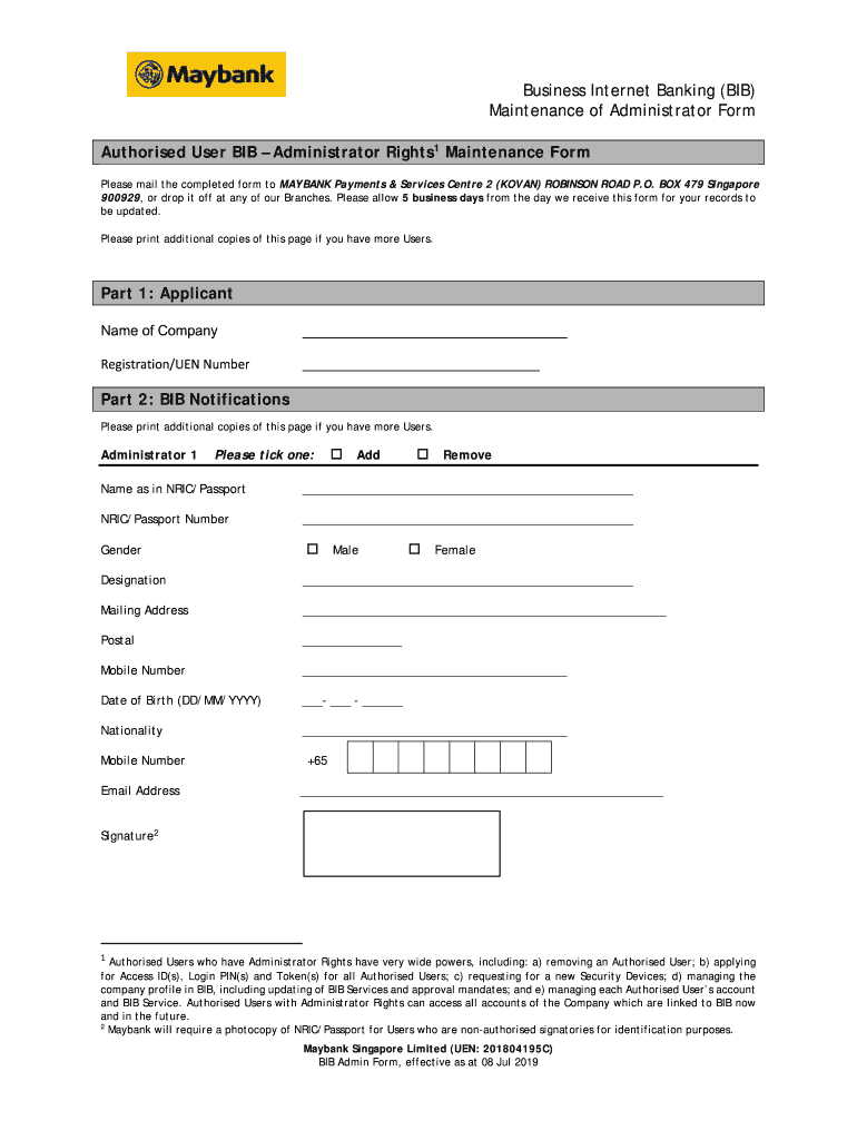 Get the free maybank bib maintenance form