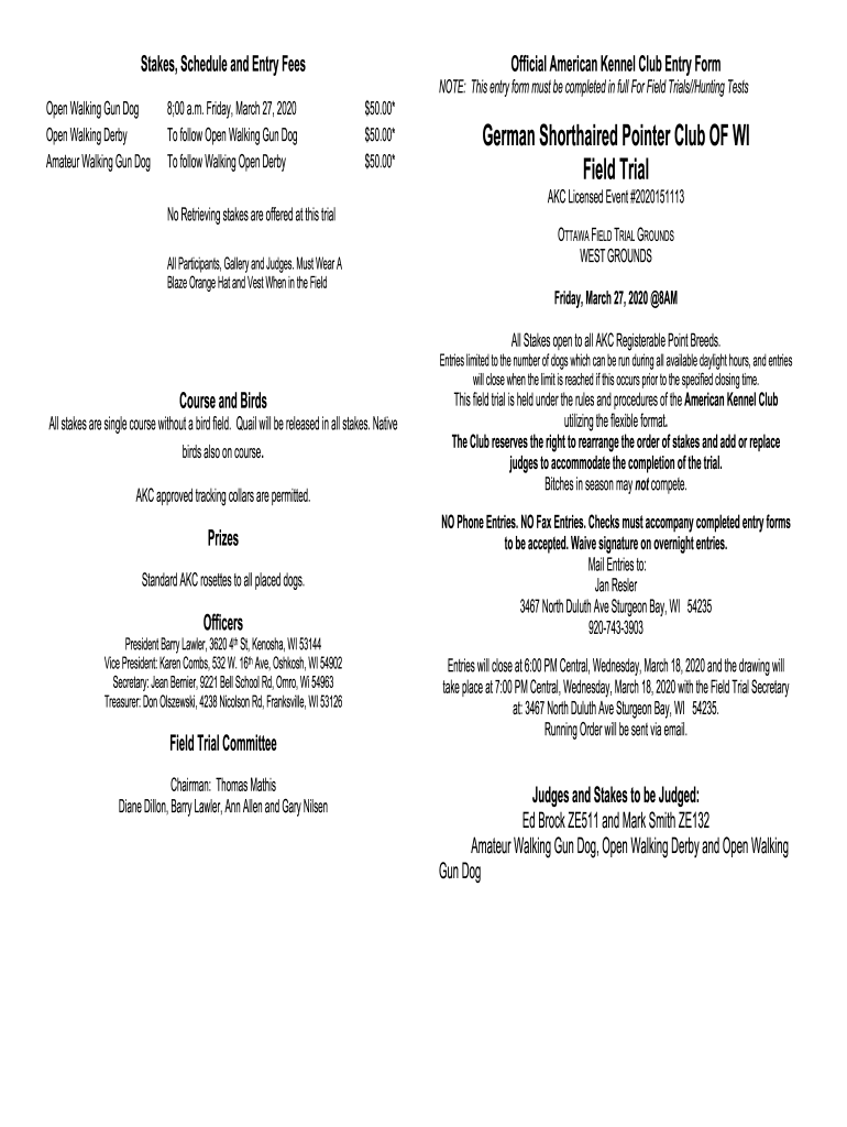 Get the free German Shorthaired Pointer Club OF WI Field Trial
