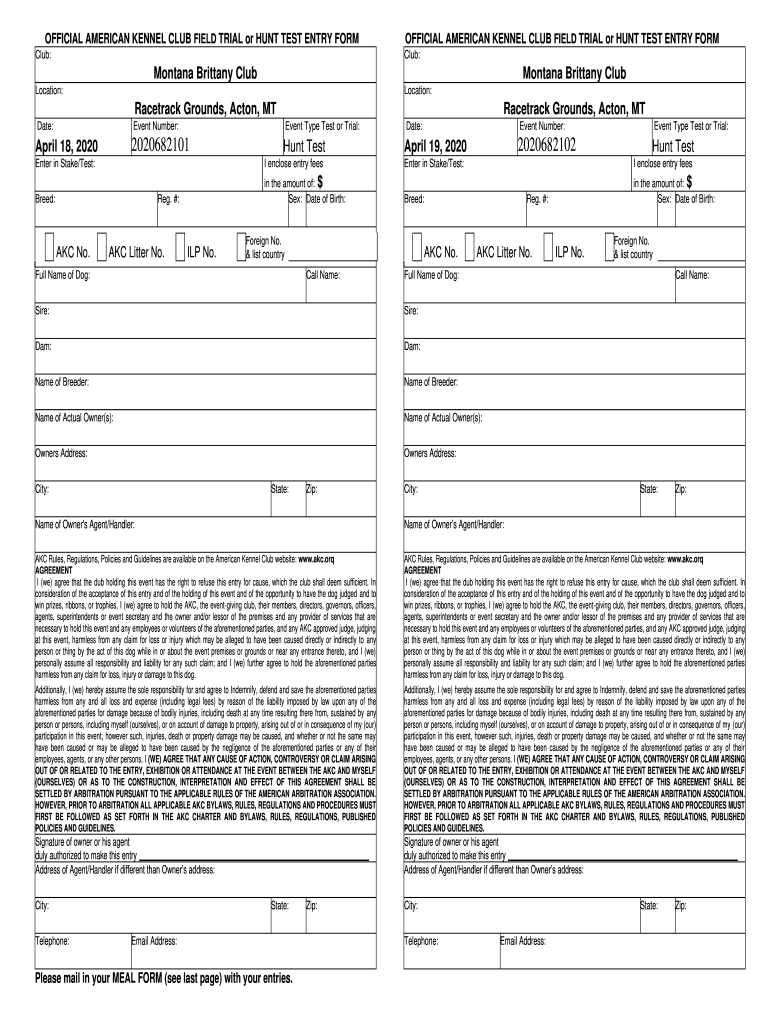 Club:OFFICIAL AMERICAN KENNEL CLUB FIELD TRIAL or HUNT TEST ENTRY FORM