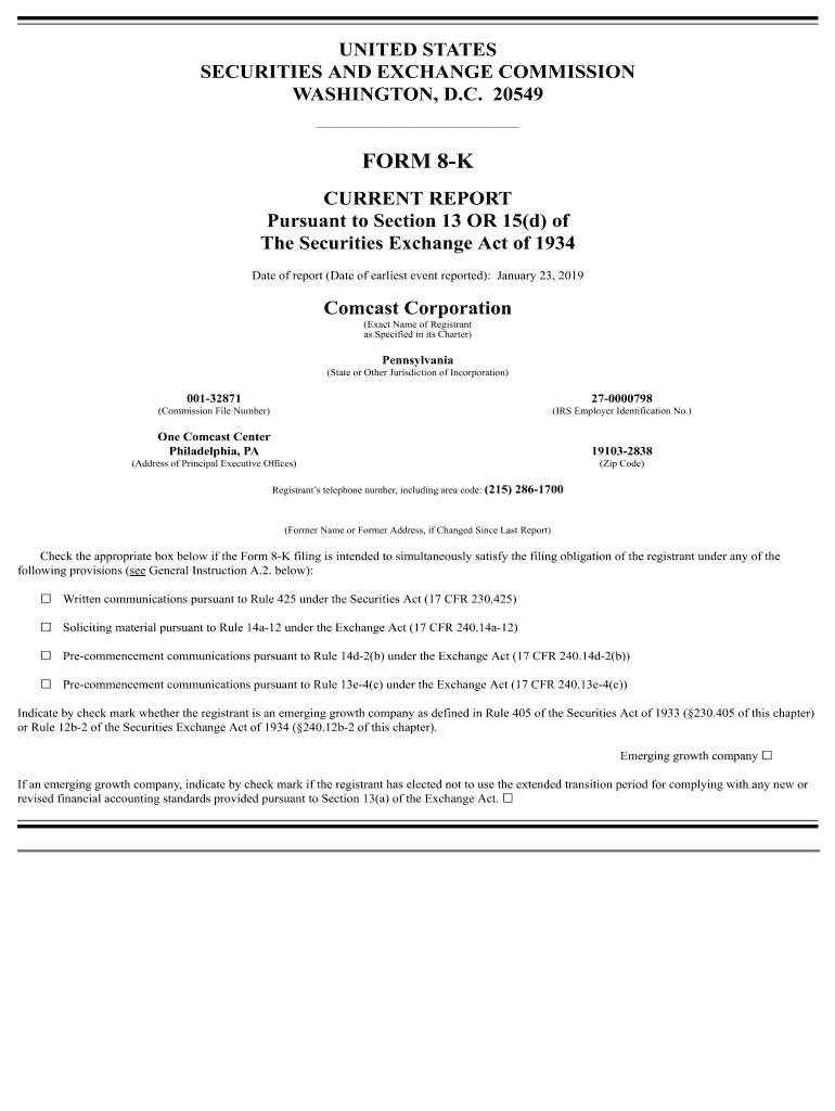 Get the free On January 23, 2019, Comcast Corporation (Comcast) issued a press release reporting ...