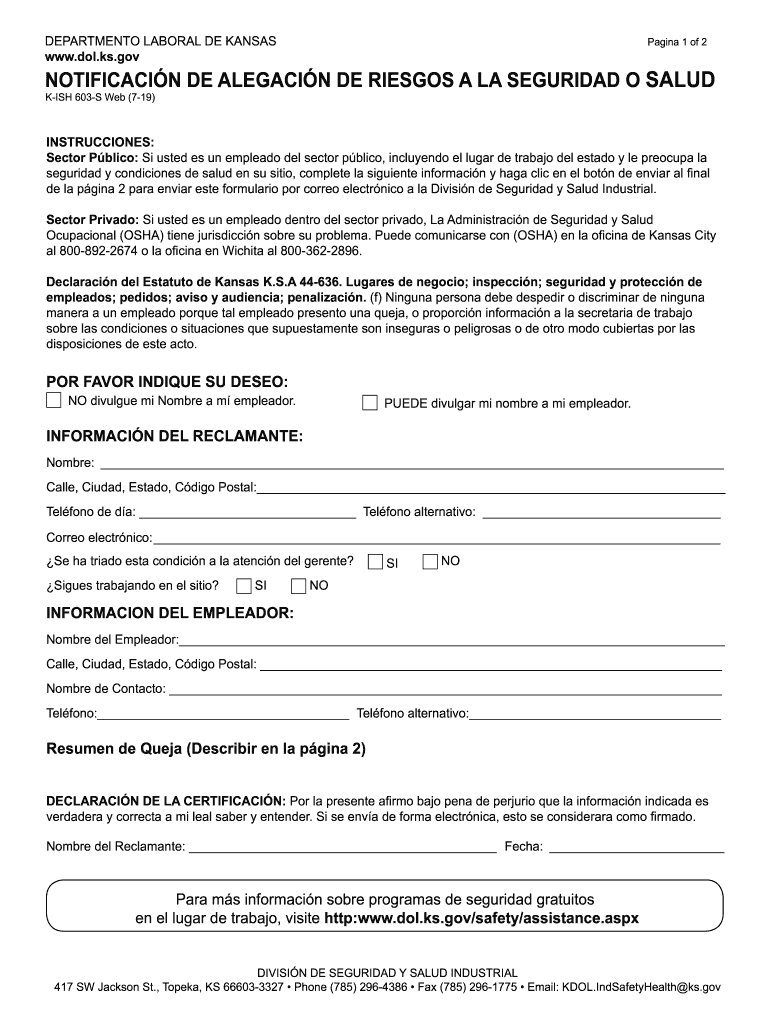 DEPARTMENT LABOR AL DE Kansas.DOL.ks.vagina 1 of 2NOTIFICACIN DE AGAIN DE PRIESTS À la SCIURIDAE O SALAD
