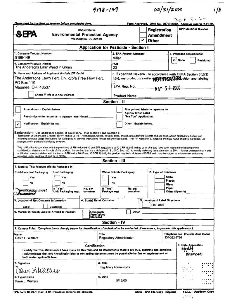 1/8. “ '. “., '. “J 'IN. F. United StatesoEPAEnvironmental Protection Agency Washington, DC 20480 '.PM, The Anderson's Easy Weed 'n Green3, Proposed OassificationoDNoneRestricted235. Name and