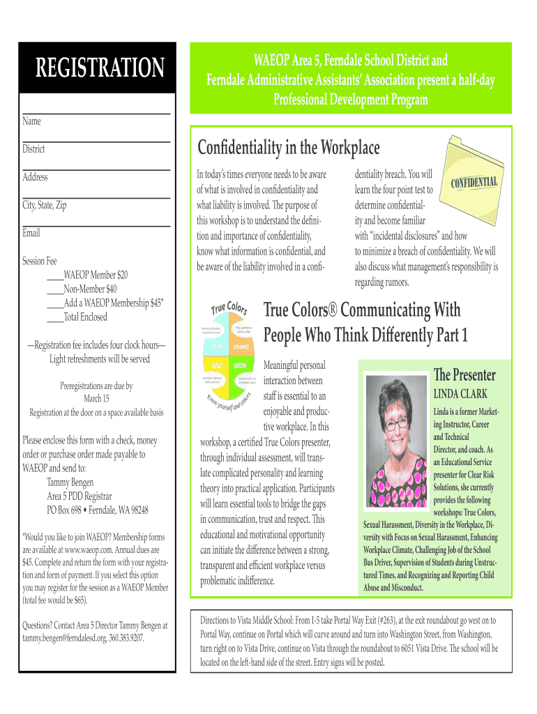 Get the free REGISTRATION WAEOP Area 5, Ferndale School District and ...