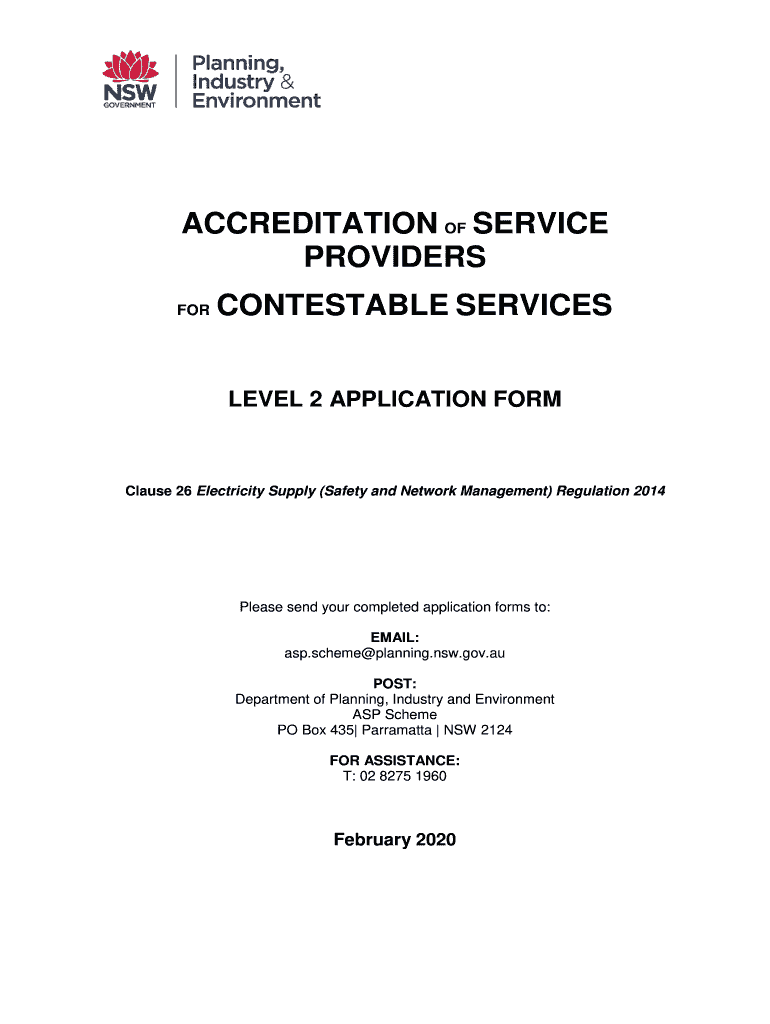 ACCREDITATION OF SERVICE PROVIDERS CONTESTABLE SERVICES LEVEL 2 APPLICATION Formulas 26 Electricity Supply (Safety and Network Management) Regulation 2014Please send your completed application forms