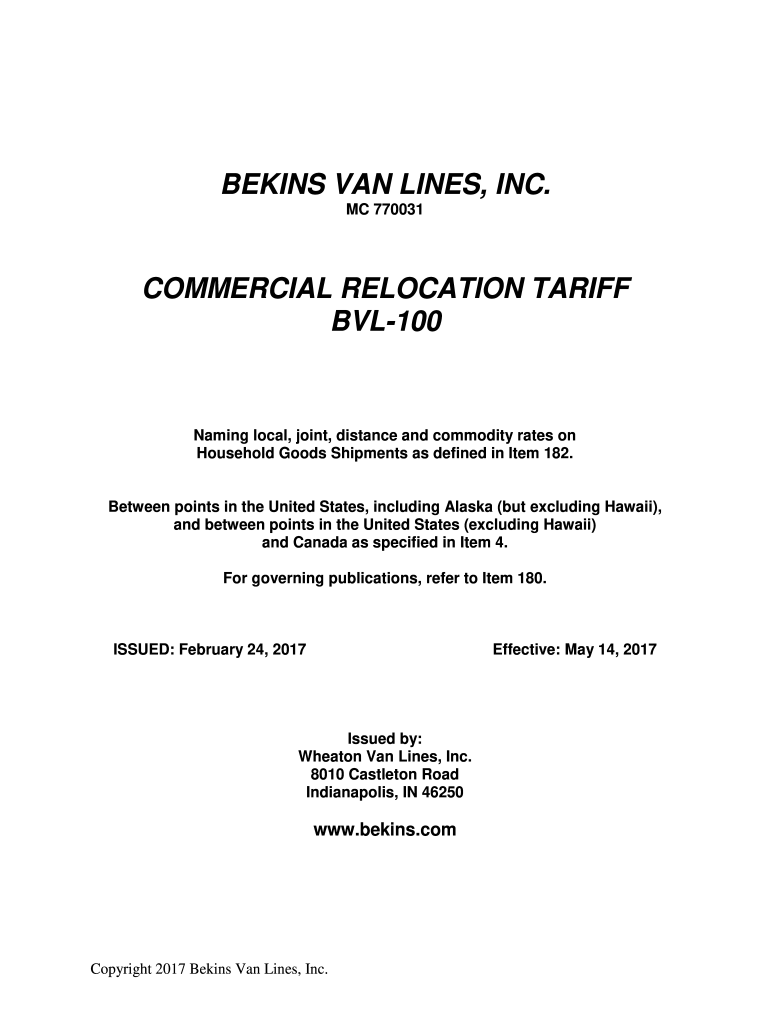 MC 770031COMMERCIAL RELOCATION TARIFF