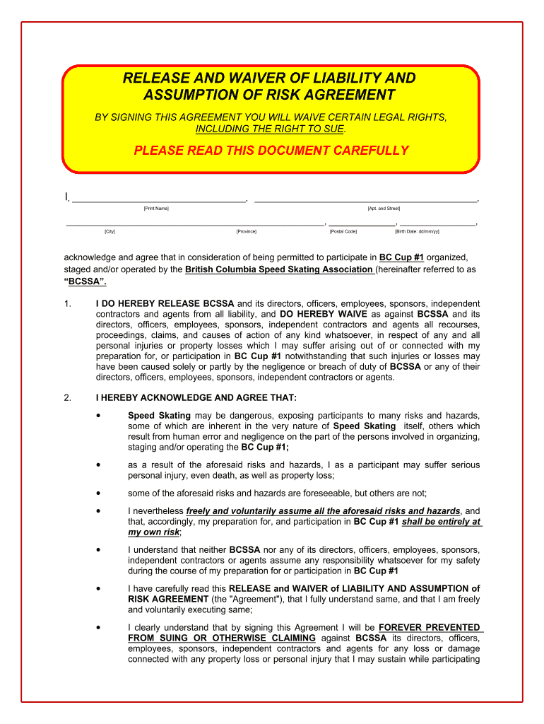 RELEASE AND WAIVER OF LIABILITY AND ASSUMPTION OF RISK AGREEMENT BY SIGNING THIS AGREEMENT YOU WILL WAIVE CERTAIN LEGAL RIGHTS, INCLUDING THE RIGHT TO SUE.PLEASE READ THIS DOCUMENT CAREFULLY,,, Print