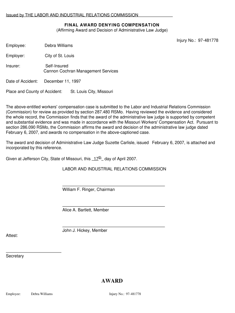 Issued by THE LABOR AND INDUSTRIAL RELATIONS COMMISSION