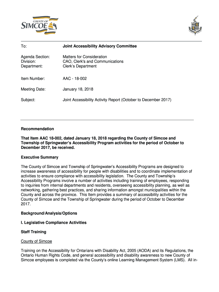 Get the free To: Joint Accessibility Advisory Committee Agenda Section ...
