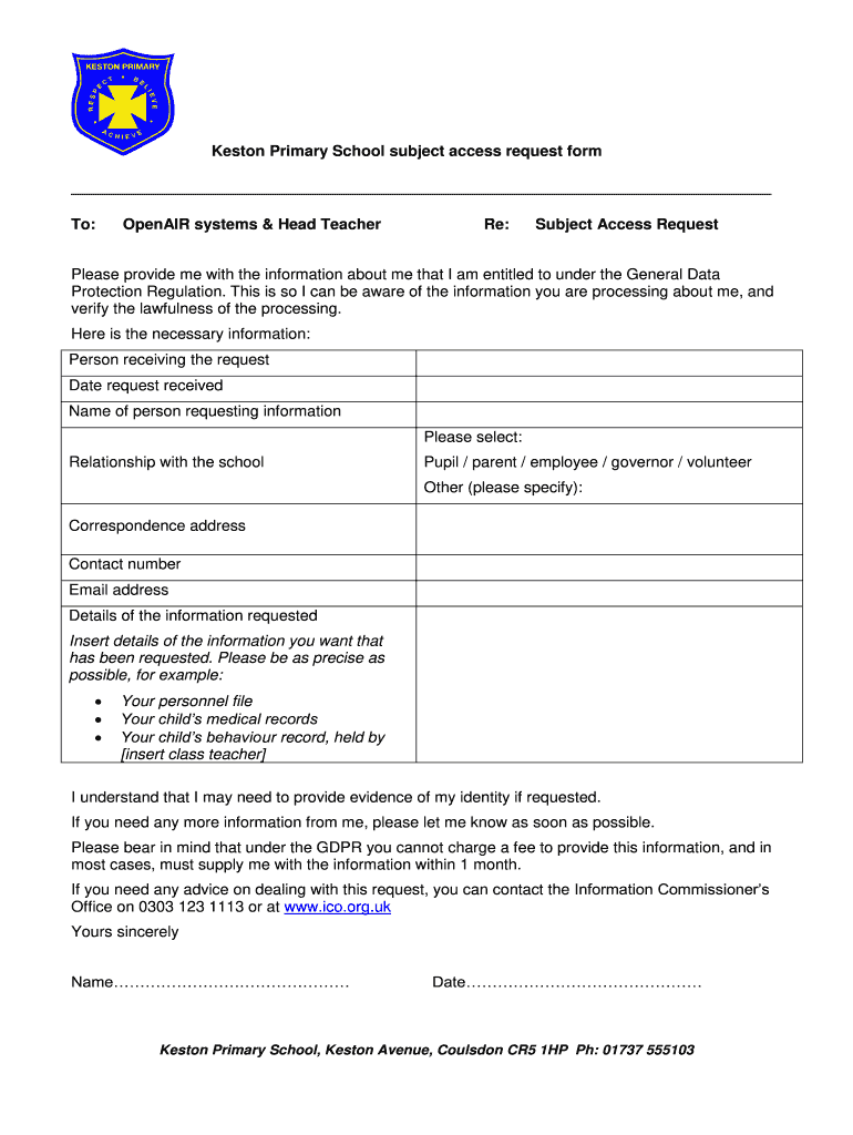 Get the free CVPKeston Primary School subject access request form To ...